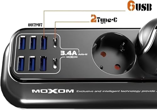 - 【شحن ذكي عبر منافذ تايب سي و يو إس بي】 يتميز بـ 8 منافذ شحن ذكية (2 تايب سي + 6 يو إس بي). توفر المنافذ شحناً سريعاً وفعالاً للأجهزة المحمولة. متوافق مع آيفون 15 / 14 / 13، متوافق مع سامسونج جالاكسي S24 / S23 / A55، متوافق مع آيباد برو، متوافق مع الساعات الذكية، ومتوافق مع سماعات الأذن.