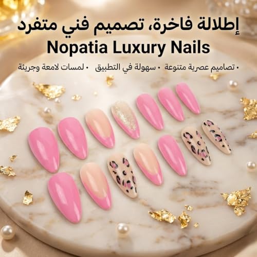 Nopatia - طقم أظافر صناعية من Nopatia فاخرة بتصاميم فنية متنوعة، مجموعة بنقشات عصرية ولمسات لامعة، زينة أظافر متكاملة للمناسبات (نبيتي)