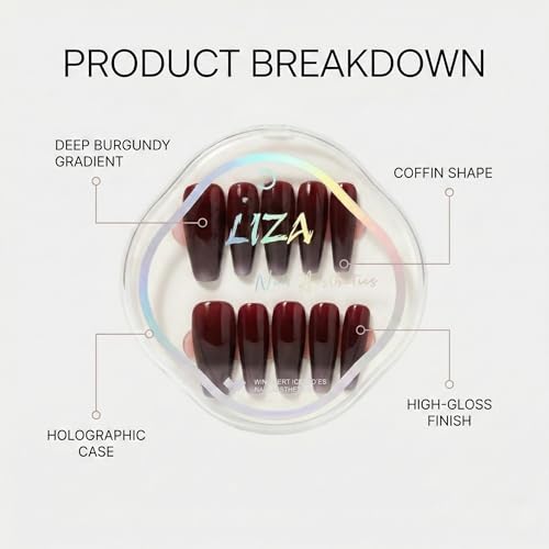 Nopatia - طقم أظافر صناعية من Nopatia فاخرة بتصميم "كوفن" (Coffin) اللامع، أظافر كاملة ذات مظهر صالونات احترافي، مجموعة تزيين الأظافر الأنيقة للمناسبات اليومية