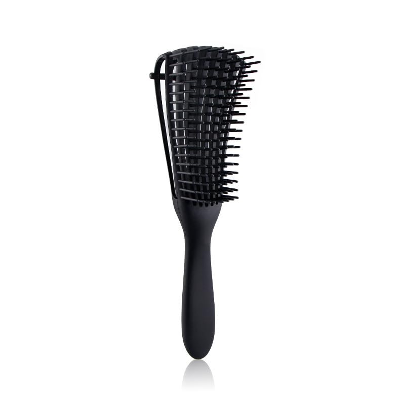 Nopatia - فرشاة الاحترافية لفك تشابك الشعر الكيرلي والمجعد، 8 صفوف مرنة لفك العقد بدون ألم، من Nopatia مناسبة للشعر المبلل والجاف وتدليك فروة الرأس بتصميم مريح وعصري (اسود)
