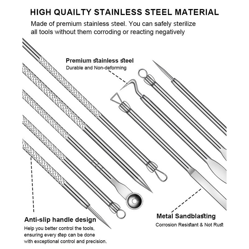 - ستانلس ستيل عالي الجودة ومقاوم للصدأ: مصنوعة من الستانلس ستيل المتين لضمان استخدام طويل الأمد بدون تآكل، سهلة التعقيم والتنظيف، مما يجعلها خيارًا صحيًا وآمنًا للعناية اليومية بالبشرة في المنزل.