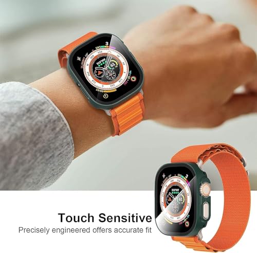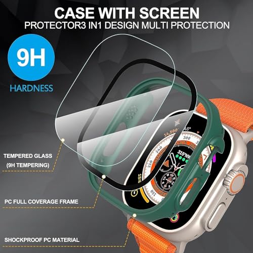Nopatia - شاشة حماية من الزجاج المقوى من Nopatia متوافقة مع ساعة أبل الترا 49 ملم الترا 2 الترا 3 هيكل من البولي كربونات الصلبة فائق النحافة ومضاد للصدمات من جميع الجوانب لساعة اي ووتش (اخضر)