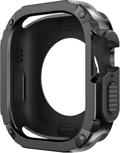 Nopatia - جراب ممتص للصدمات هجين من البولي يوريثين والبوليكربونات لـ ساعة ابل واتش الترا 49 مم من Nopatia حماية كاملة للحواف غطاء متين وتصميم رياضي (اسود)