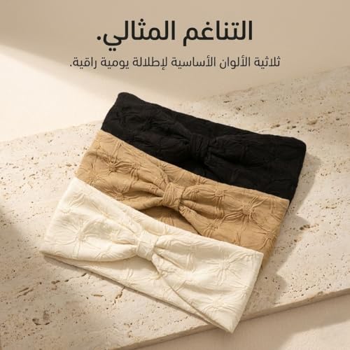 Nopatia - طقم باندانا شعر عريضة للنساء 3 قطع من Nopatia تصميم عقدة فيونكة Twisted Knot، خامة ناعمة ومرنة لتثبيت الشعر أثناء المكياج، غسل الوجه والرياضة، ألوان محايدة تناسب جميع الإطلالات اليومية