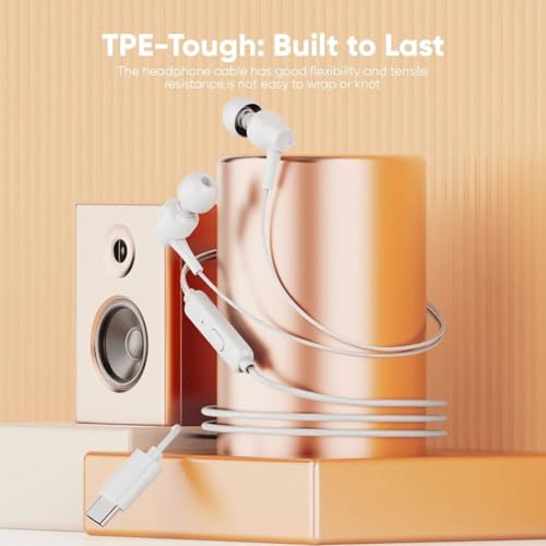 Nopatia - سماعات أذن سلكية داخل الأذن من Nopatia بمنفذ (تايب سي) صوت نقي وميكروفون وتصميم مريح مع زر تحكم متوافق مع آيفون 15 برو ماكس وسامسونج جالاكسي S24 A55 وآيباد برو