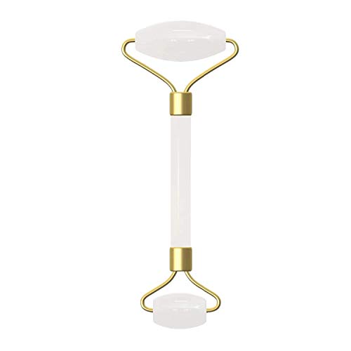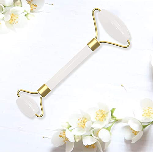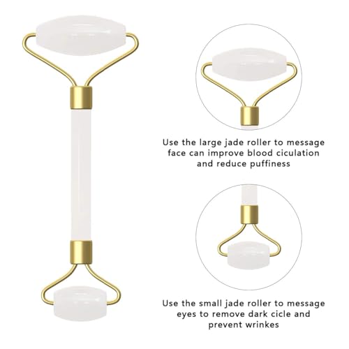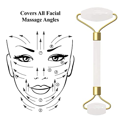 Nopatia - طقم بكرة من Nopatia اليشم الأبيض وأداة جواشا للتدليك - مجموعة رولر وجه من الحجر الطبيعي لشد البشرة وتقليل الانتفاخ - أدوات مساج لتعزيز الدورة الدموية وتحديد الفك