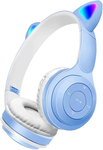 Nopatia - سماعات رأس بلوتوث لاسلكية فوق الأذن من Nopatia، سماعة قابلة للطي مع ميكروفون مدمج وإضاءة ليد مضيئة، تدعم الوضع السلكي لـ هواتف أيفون وأيباد وسامسونج والكمبيوتر للأطفال والكبار (أزرق فاتح)