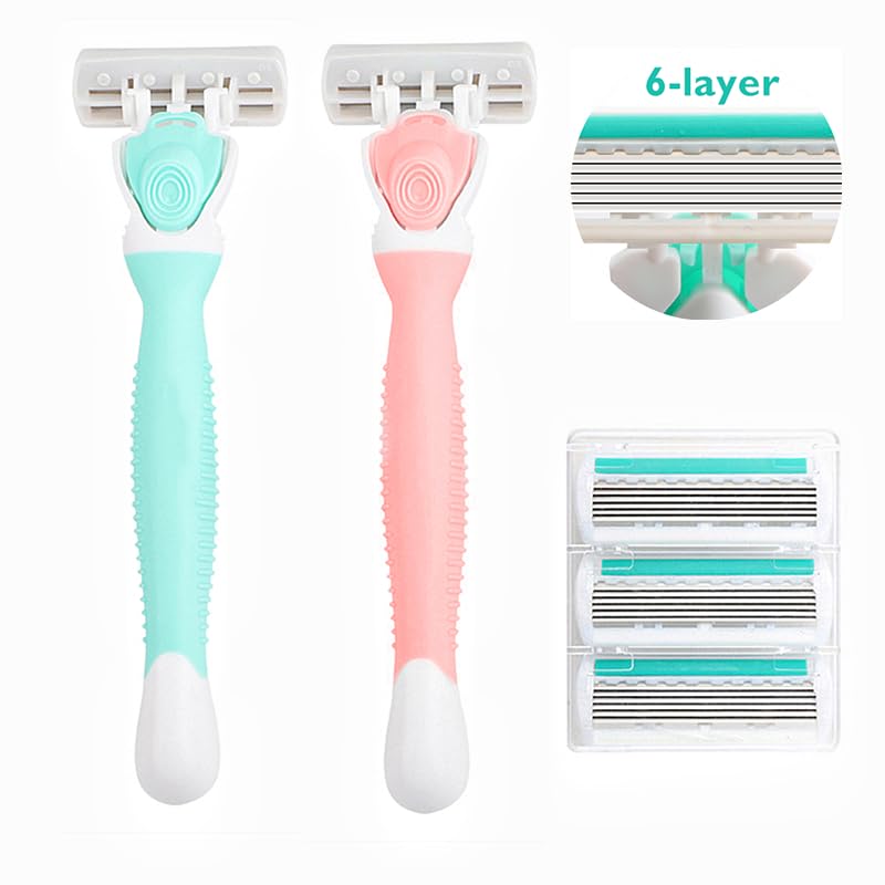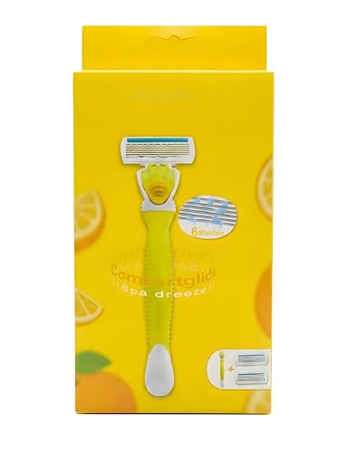 Nopatia - ماكينة حلاقة من Nopatia نسائية 6 شفرات ستانلس ستيل برائحة الليمون المنعشة لإزالة شعر الجسم والوجه بدقة، تشمل يد و2 غيار لبشرة ناعمة وحريرية بدون تهيج ومريحة