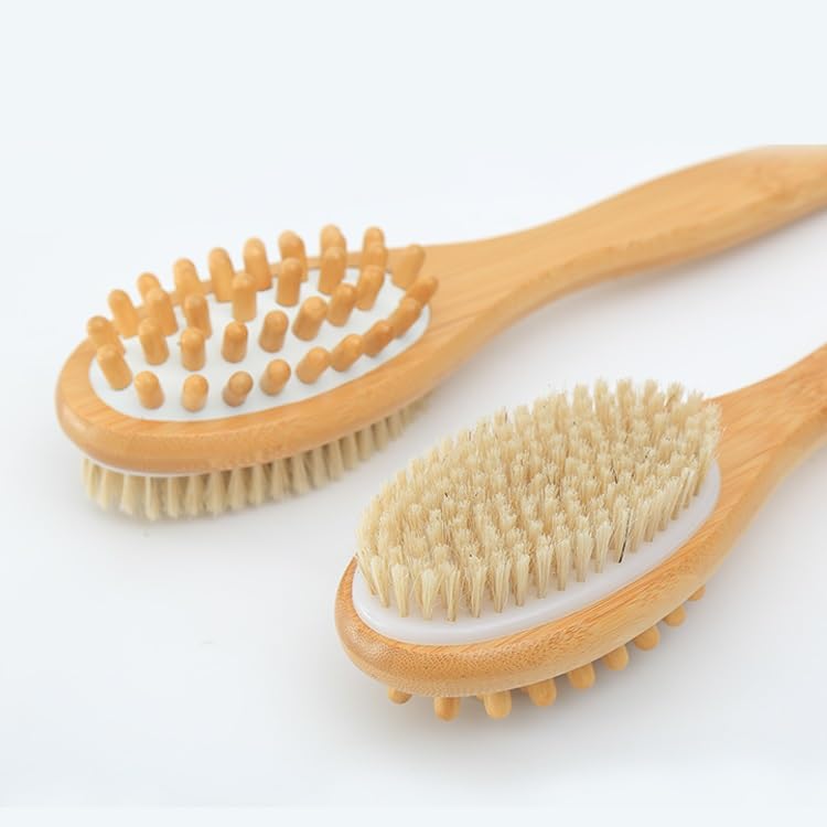 - تنشيط الدورة الدموية وتدليك الجسم: تعمل هذه الفرشاة كمدلك مثالي يساعد في تنشيط الدورة الدموية وتصريف السموم من خلال تدليك الجسم بلطف، مما يقلل من ظهور السيلوليت ويترك بشرتكِ مشدودة وأكثر نضارة وجاذبية مع الاستخدام المنتظم في روتينكِ اليومي.