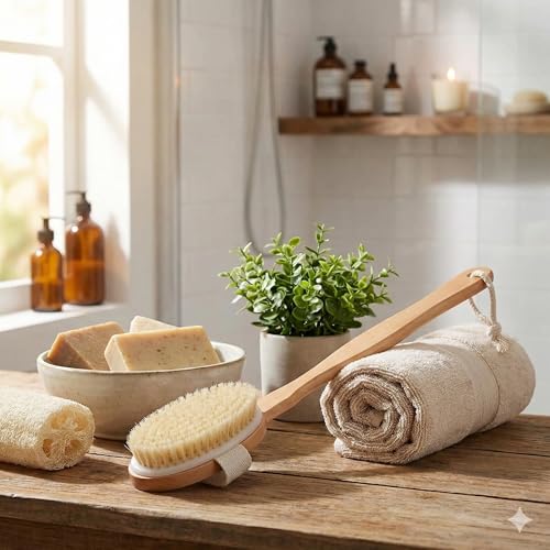 - يد خشبية طويلة للوصول الكامل: يتميز التصميم بيد خشبية طويلة ومتينة تسمح لكِ بالوصول إلى مناطق الظهر الصعبة بكل سهولة وانسيابية، مما يضمن نظافة متكاملة لكامل الجسم دون عناء، ويوفر لكِ تجربة استرخاء مذهلة تضاهي أفخم صالونات العناية.