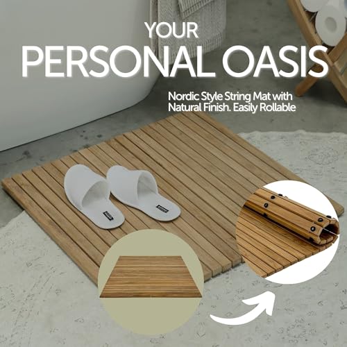 NORDIC STYLE TEAK - بساط من خشب الساج الصلب بنسبة 100% من نورديك تيك - للاستخدام الداخلي والخارجي - منصة خشبية غير قابلة للانزلاق للساونا وحمام السباحة وديكور ارضيات حوض الاستحمام الساخن وواقي (لمسة نهائية طبيعية، 30 انش
