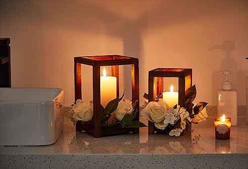 - ديكور ريفي: يستخدم على الطاولة، رف المدفأة، وكديكور للأرفف، وديكور للخريف والحمام كقطعة أنيقة. ضع فوانيس الشموع هذه بجوار شجرة الكريسماس للاستمتاع بأجواء احتفالية.