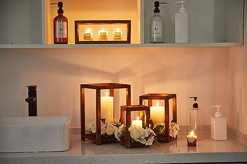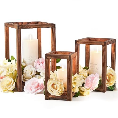 Noriginalic - فوانيس شموع لتزيين طاولة الزفاف، قطعة زينة وسطية بنمط ريفي للزفاف، حامل شموع خشبي (3 قطع في مجموعة واحدة) من نوريجيناليك
