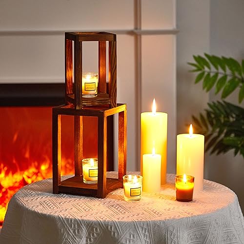 - مجموعة خشبية للديكور المنزلي: 24 × 15 × 15 سم، 19.8 × 11.4 × 11.4 سم. يضيف التصميم الفريد لمجموعة الفوانيس هذه تفاصيل أنيقة إلى أي غرفة. ابتكر أجواء مثالية - يمكنك استخدام الفوانيس لإضاءة الشرفة/السطح الخلفي أو إضافة لمسة مثالية من الإضاءة الخافتة إلى غرفة المعيشة أو المطبخ مع هذا الديكور الريفي المميز.