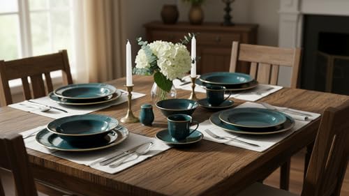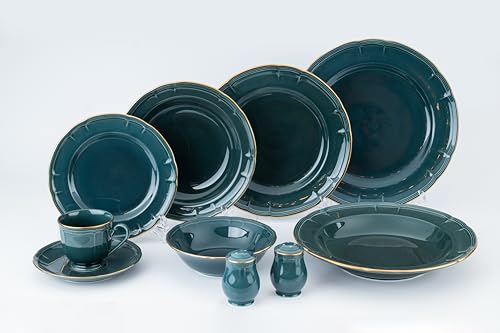 Noritake - طقم عشاء بروفانس من نوريتيك، لون أزرق مخضر وذهبي 40 قطعة