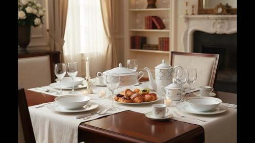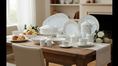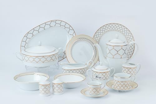 - 3 أطباق تقديم بيضاوية و 2 بولة للشوربة مع غطاء وإبريق شاي واحد مع غطاء وسكرية واحدة مع غطاء.