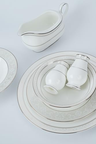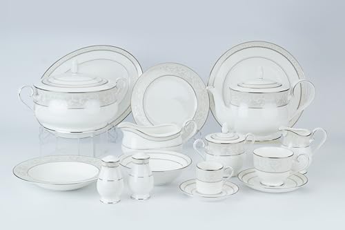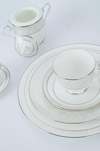 Noritake - طقم بدوات مائدة مونتفيل بلاتينيوم 112 بي بون تشاينا من نوريتيك