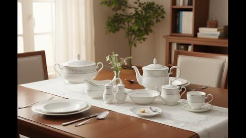 - 12 طبق مسطح 27.5 سم و12 طبق غويط، 23 سم و12 طبق جاتو 21 سم و12 بولة شوربة 15 سم.