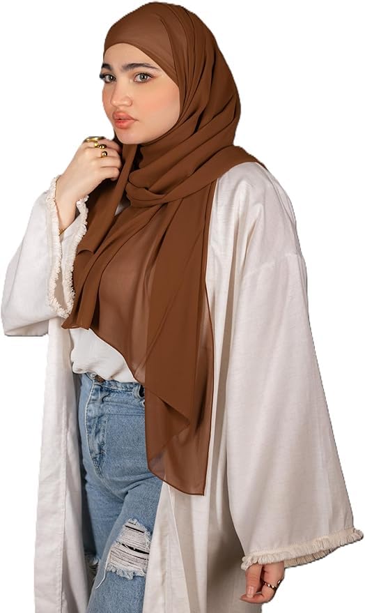 Generic - سكارف شيفون منقوش من نورشوبينج - هدية راقية للمناسبات الخاصة - قماش أنيق - تصميم متعدد الاستخدامات وأكسسوار مثالي لأي زي - حجاب للنساء - مقاس (70 سم × 1.8 متر) بنى فاتح