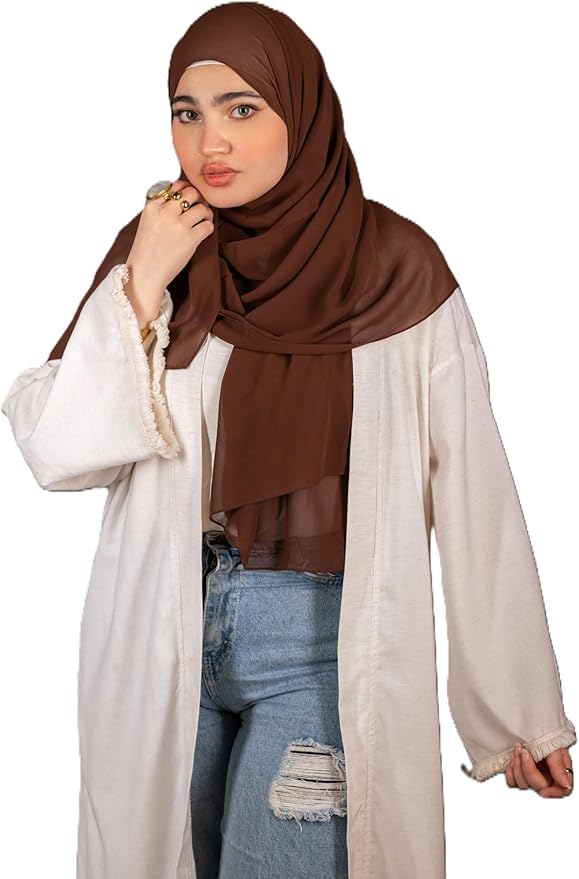Generic - سكارف شيفون منقوش من نورشوبينج - هدية راقية للمناسبات الخاصة - قماش أنيق - تصميم متعدد الاستخدامات وأكسسوار مثالي لأي زي - حجاب للنساء - مقاس (70 سم × 1.8 متر) بنى ساده
