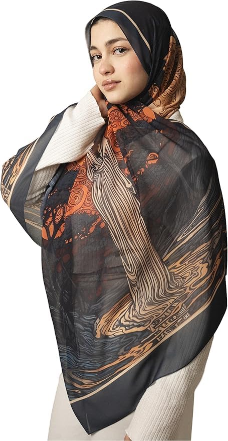 Generic - سكارف شيفون منقوش من نورشوبينج - للمناسبات الخاصة - قماش أنيق - تصميم متعدد الاستخدامات وأكسسوار مثالي لأي زي - حجاب للنساء - مقاس (70 سم × 1.8 متر) اسود