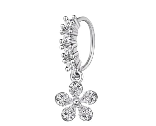 BIJOUX BEAUTIQUE - مجوهرات بيرسينج متدلية على شكل زهرة مرصعة بالزهور للأنف والاذن - ابيض، فضي