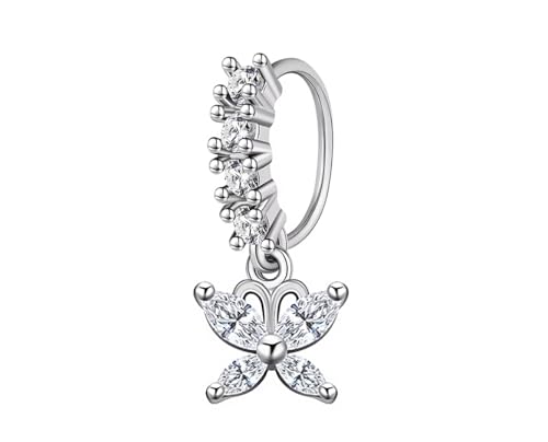 BIJOUX BEAUTIQUE - مجوهرات بيرسينج بتلات مرصعة بتلات متدلية للأنف والاذن - ابيض، فضي