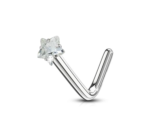 BIJOUX BEAUTIQUE - مجوهرات ثقب على شكل نجمة على شكل حرف L - ابيض وفضي