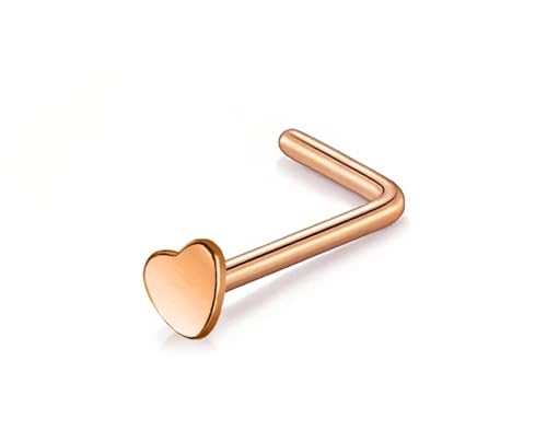 BIJOUX BEAUTIQUE - مجوهرات ثقب الأنف على شكل قلب على شكل حرف L - ذهبي وردي