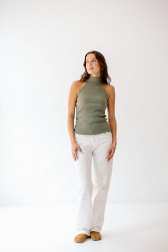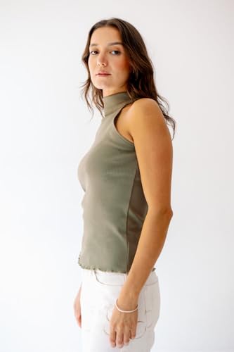 Shop Notch - توب كات بدون اكمام برقبة عالية من القطن المضلع للنساء من نوتش