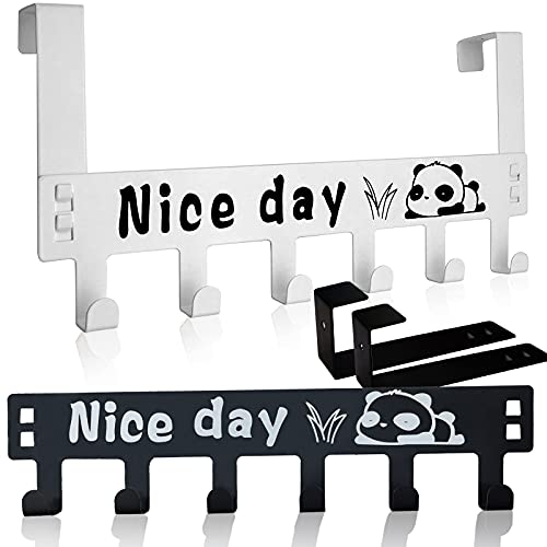 XTUDOU - 2 شماعة باب من اكس تودو مع 6 خطافات تخزين، بيضاء وسوداء لفوق الباب، مناسبة للطاقية وبالطو الحمام والفوط، للغرفة والمطبخ والحمام، صلب كربوني، مننشرز، الحد الأقصى للوزن الموصى به: 12.0 كيلوجرام، متعدد