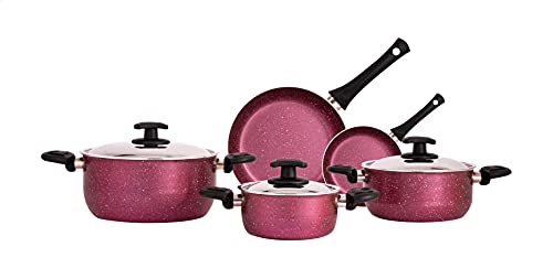 Nouval - طقم حلل جرانيت مع مقلاة من نوفال، احمر