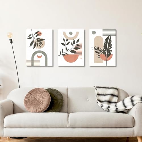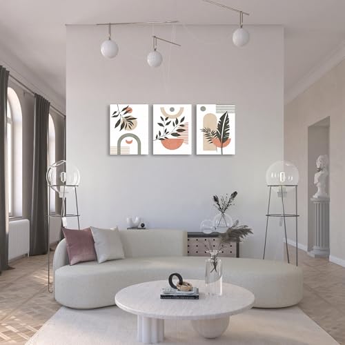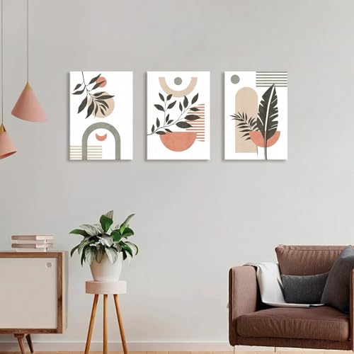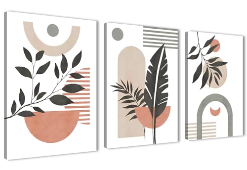 Nova Art - تابلوه 3 قطع كانفاس جدارية بتصميم أزهار مع أشكال هندسية بألوان دافئة لتزيين حائط غرفة النوم والمعيشة والمكتب وما إلى ذلك ديكور منزلي حديث من نوفا آرت ، مقاس 30 سم × 40 سم × 3 قطع