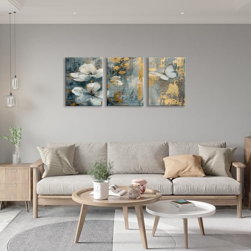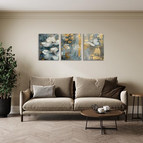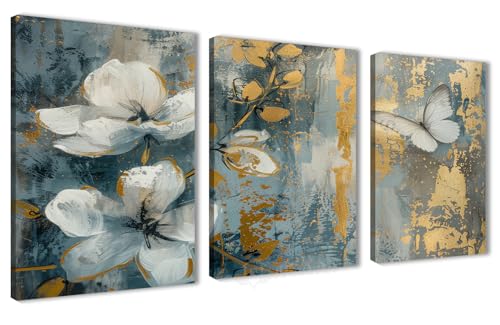 Nova Art - تابلوه كانفاس جدارية مطبوع بتصميم تجريدية بتدرجات الأزرق والذهبي بتأثيرات فرشاة لتزيين حائط غرفة النوم والمعيشة والمكتب وما إلى ذلك ديكور منزلي حديث من نوفا آرت ، مقاس 30 سم × 40 سم × 3 قطع