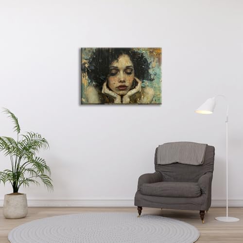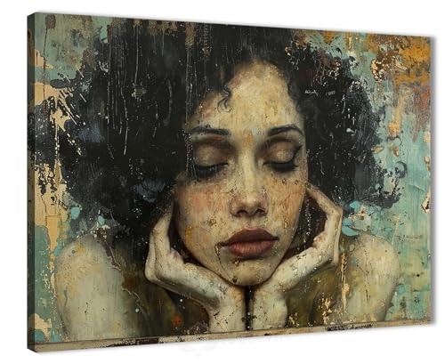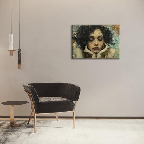 Nova Art - تابلوه كانفاس جدارية مطبوع بتصميم تجريدي فتاة بشعر مجعد داكن لتزيين حائط غرفة النوم والمعيشة والمكتب وما إلى ذلك ديكور منزلي حديث من نوفا آرت ، مقاس 30 سم × 40 سم