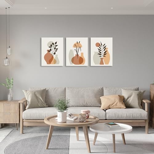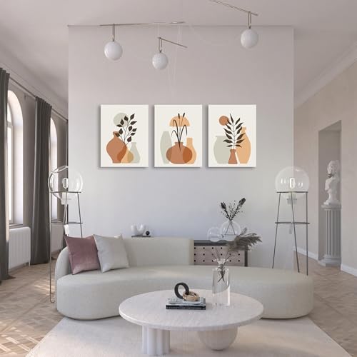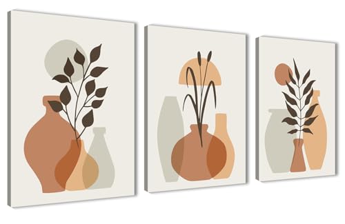 Nova Art - تابلوه كانفاس جدارية مطبوع بتصميم تجريدية بألوان ترابية، أواني نباتية بأسلوب بسيط لتزيين حائط غرفة النوم والمعيشة والمكتب وما إلى ذلك ديكور منزلي حديث من نوفا آرت ، مقاس 30 سم × 40 سم × 3 قطع