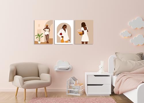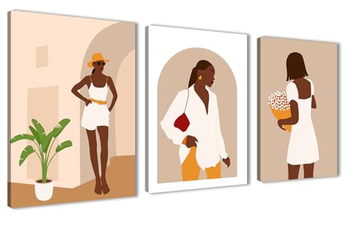 Nova Art - تابلوه كانفاس جدارية مطبوع بتصميم تجريدي فتيات بأسلوب بسيط ومُعاصر، تُبرز تفاصيل الموضة لتزيين حائط غرفة النوم والمعيشة والمكتب وما إلى ذلك ديكور منزلي حديث من نوفا آرت ، مقاس 30 سم × 40 سم × 3 قطع