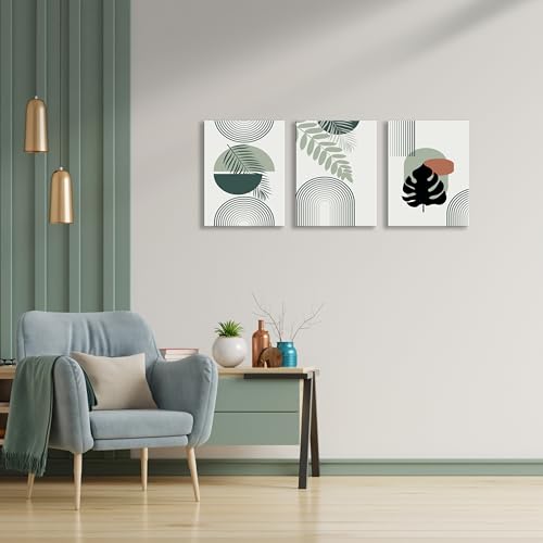 Nova Art - تابلوه كانفاس جدارية مطبوع بتصميم تجريدي تجمع بين الأشكال الهندسية والعناصر النباتية لتزيين حائط غرفة النوم والمعيشة والمكتب وما إلى ذلك ديكور منزلي حديث من نوفا آرت ، مقاس 30 سم × 40 سم × 3 قطع