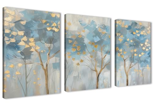 Nova Art - تابلوه كانفاس جدارية مطبوع بتصميم تجريدي أشجارًا بأوراق ذهبية لتزيين حائط غرفة النوم والمعيشة والمكتب وما إلى ذلك ديكور منزلي حديث من نوفا آرت ، مقاس 30 سم × 40 سم × 3 قطع