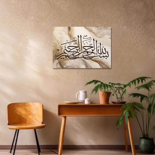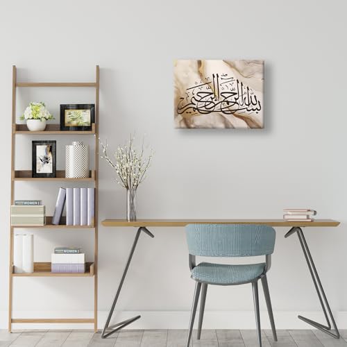 Nova Art - تابلوه كانفاس جدارية مودرن مطبوع بتصميم رخام بيج وذهبي خط عربي ناعم يتناغم مع خلفية دافئة ومزخرفة لتزيين حائط غرفة النوم والمعيشة والمكتب وما إلى ذلك ديكور منزلي حديث من نوفا آرت ، مقاس 30 سم × 40 سم