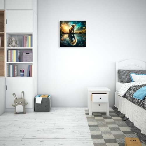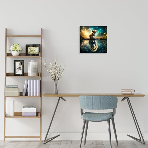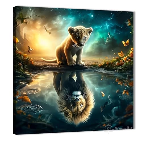 Nova Art - لوحة جدارية من نوفا آرت، ديكور معلق للحائط مناسب لغرف النوم والمعيشة والمكتب، تصميم شبل وانعكاسه كأسد، متعدد الألوان، مقاس 30 × 30 سم