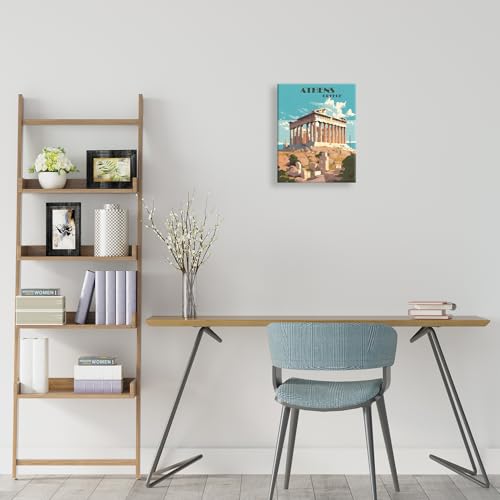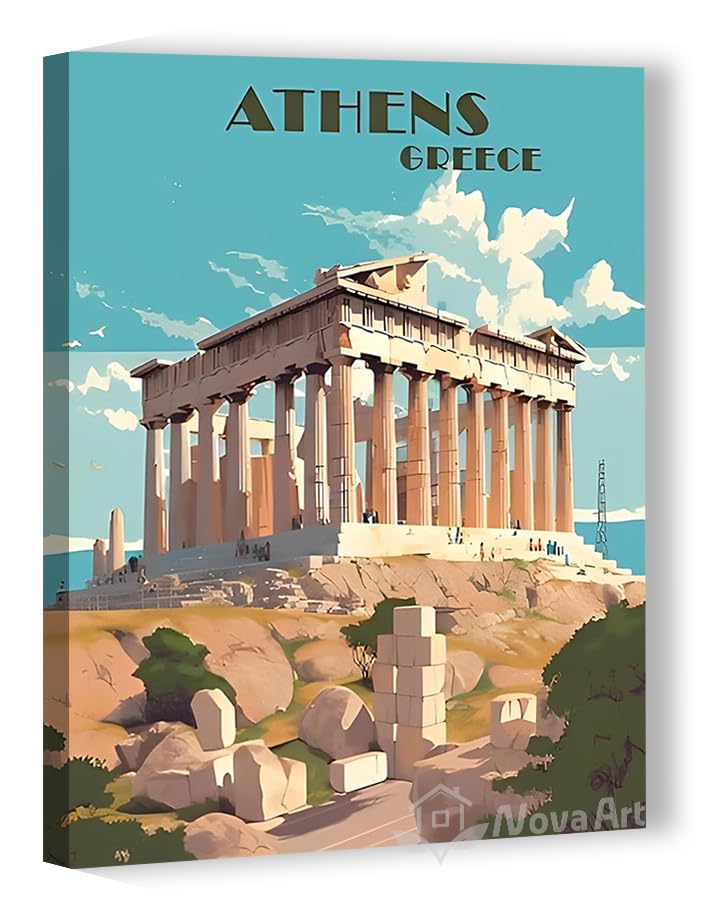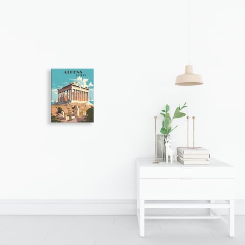 Nova Art - لوحة جدارية من نوفا آرت، كانفاس برينت لغرفة النوم والمعيشة والمكتب، تصميم معبد البارثينون باللون البيج والأبيض، مقاس 20 × 30 سم
