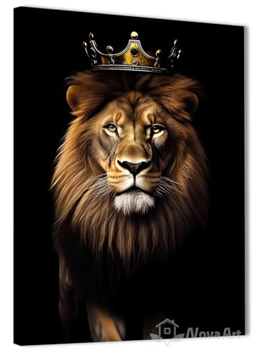 Nova Art - تابلوه كانفاس جدارية مودرن مطبوع بتصميم أسد بتاج ملكي لتزيين حائط غرفة النوم والمعيشة والمكتب وما إلى ذلك ديكور منزلي حديث من نوفا آرت ، مقاس 30 سم × 40 سم