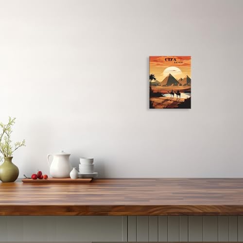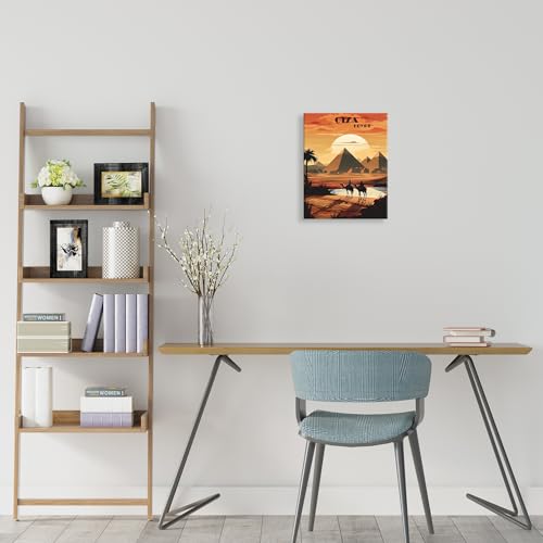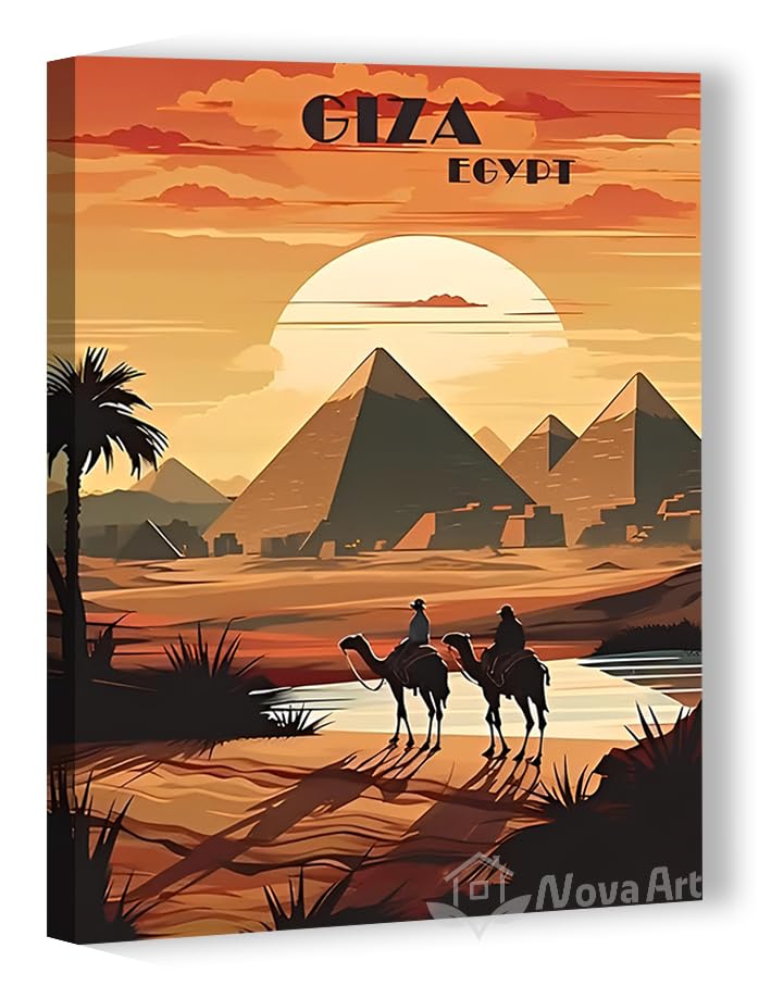 Nova Art - لوحة جدارية من نوفا آرت، ديكور معلق على الحائط لغرفة المعيشة والنوم والمكتب، تصميم غروب الشمس فوق الأهرامات باللون البرتقالي والذهبي، مقاس 30 × 20 سم