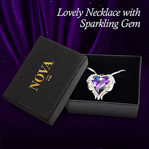 Nova & Co - سلسلة مطلية بالذهب بقلب جناح ملاك بكريستال سواروفسكي من نوفا اند كو, كريستال سواروفسكي، (للنساء، بنات)