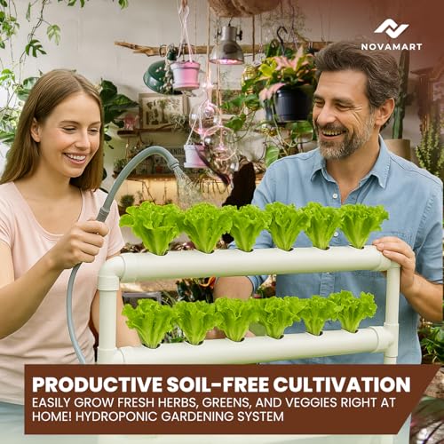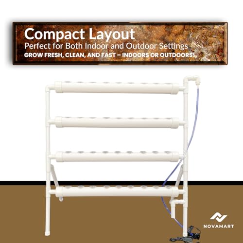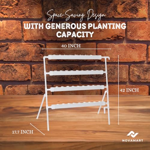 NOVAMART - نظام لزراعة النباتات المائية، برج حديقة داخلي من بلاستيك بي في سي من 36 موقعًا مع قابس استرالي/امريكي، مجموعة زراعة مائية عمودية بدون تربة مع سلال زراعة وإسفنج وأنبوب ري من نوفامارت، لون أبيض