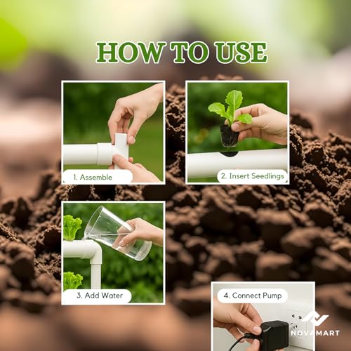 - ● 🚿 زراعة بدون تربة - نظيفة وصديقة للبيئة: تغني الزراعة المائية عن الحاجة إلى التربة، مما يقلل الفوضى وهدر المياه ويسرع النمو. استمتع بمنتجات صحية وخالية من المبيدات الحشرية مباشرة من مطبخك أو باحتك أو دفيئتك.