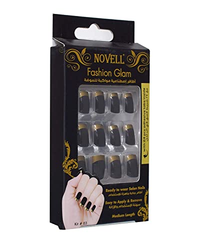Novell - مجموعة أظافر فاشون 24 ظافر Kit 03 من نوفيل - ذهبي أسود