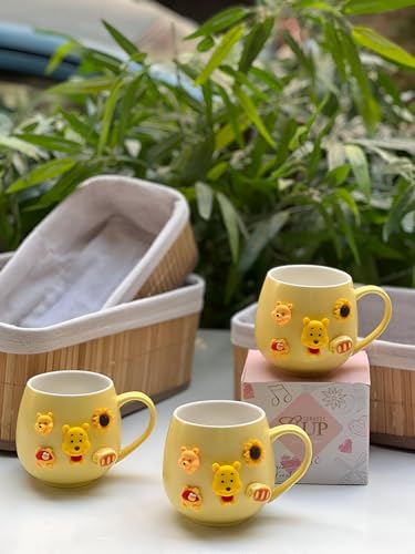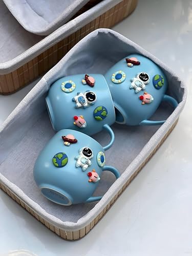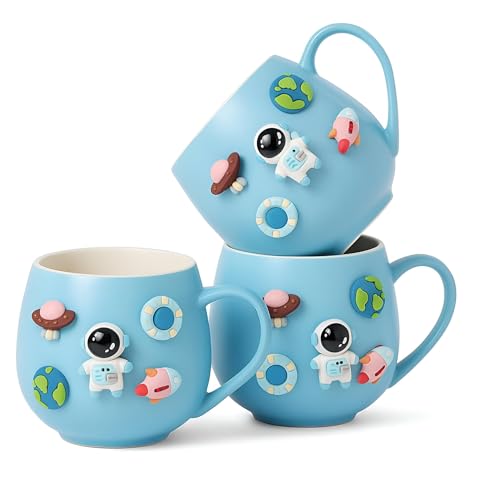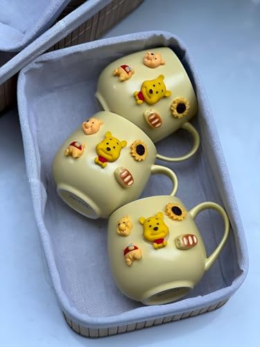 Generic - مج قهوة مبتكر - كوب سيراميك بتصميم كرتوني كاواي مع غطاء ومقبض وألوان زاهية، رائع لللاتيه والشوكولاتة الساخنة، مناسب كهدية للنساء والفتيات والاطفال، بورسلين متين (3 مساحات)