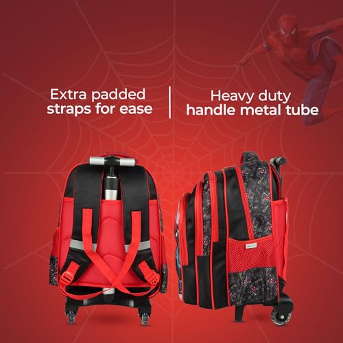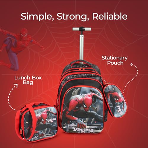 NOVEX - حقيبة سفر من نوفكس، لون أحمر، مصنوعة من البوليستر، مع عجلات ومقبض تيليسكوبي وصندوق غداء معزول وحجرة واسعة، تصميم سبايدر مان